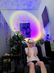 The idea for the Wellbeing Oasis grew from two needs at the centre: creating a proper space for students to take conscious breaks from intensive study, and finding a new use for the centre’s VR headsets beyond career exploration.